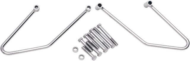 - Chrome-plated steel brackets hold throw-over saddlebags away from brake caliper and swingarm