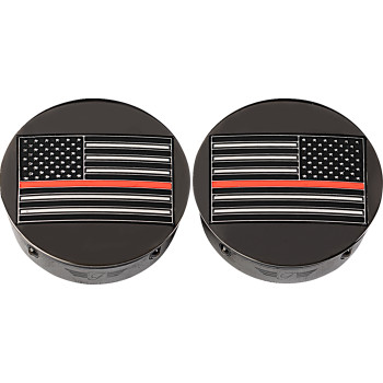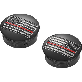 Swing Arm Covers - Red Line American Flag - Custom - Black - Reversed