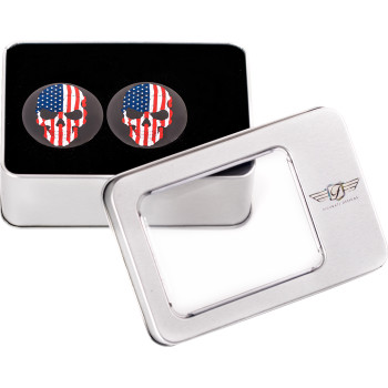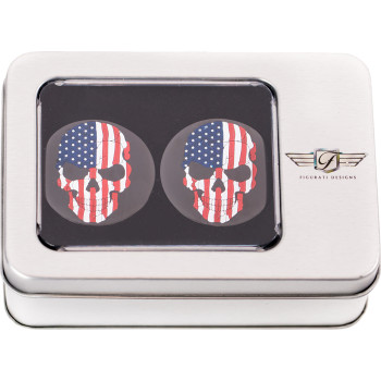 Swing Arm Covers - Red/White/Blue Flag Skull - Custom - Black