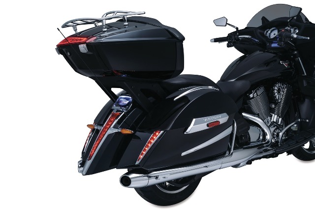 The stock trim around the sides of the Victory taillight is a nice touch, now you can finish off the look with this Taillight Top Trim. Matches the factory housing perfectly and features simple installation, making this a "must have" for any Cross Country, Cross Roads or Hard Ball. Available in Chrome